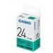 The Casio XR24GN1 Tape Cassette is a genuine Casio label printer tape that prints black text on a green background. With a width of 24mm and a length of 8m, it is ideal for labeling files, shelves, bins, cables, and equipment. The tape features a self-adhesive backing and a snap-in cassette design for easy installation.