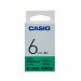 6mm label tape with black print on green background, ideal for clear, durable labeling with Casio thermal label printers. Perfect for small items and detailed labeling.