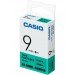 High-quality 9mm label tape with black print on a green background, ideal for clear, durable, and professional labeling. Works with Casio thermal label printers and provides crisp, easy-to-read labels without ink or toner.
