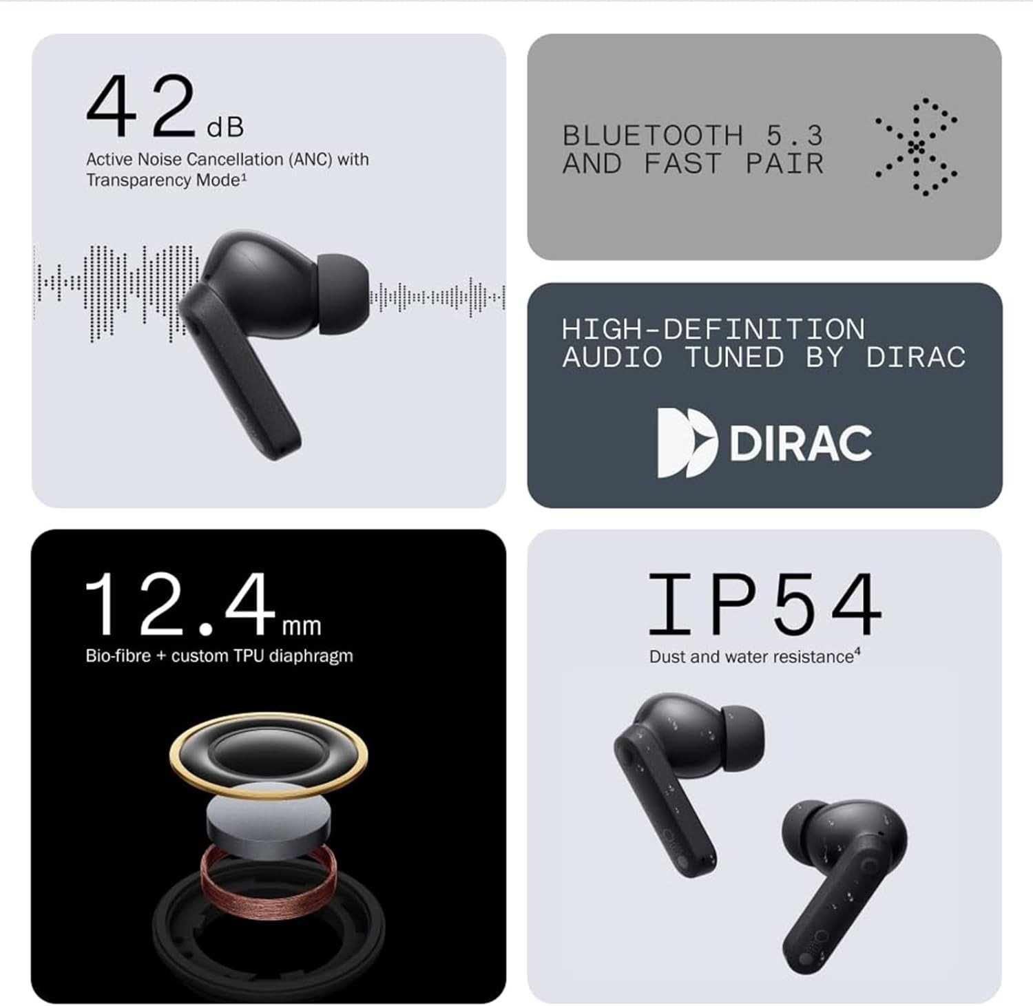 • HIGH CLEAR, POWERFUL BASS - CMF Buds oversized 12.4mm Bio-fiber Bluetooth headphones and Ultra Bass 2.0 technology, delivering boosted bass for everyone. We've jointly tuned five popular EQ settings with Dirac to ensure an optimal sound experience tailored to various music styles.