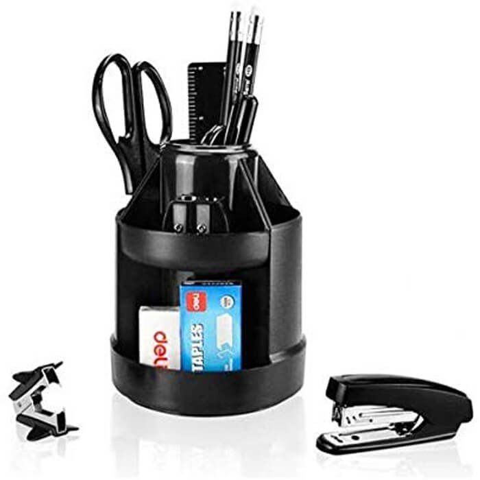 Deli 38250A Rotary Desk Organizer Black