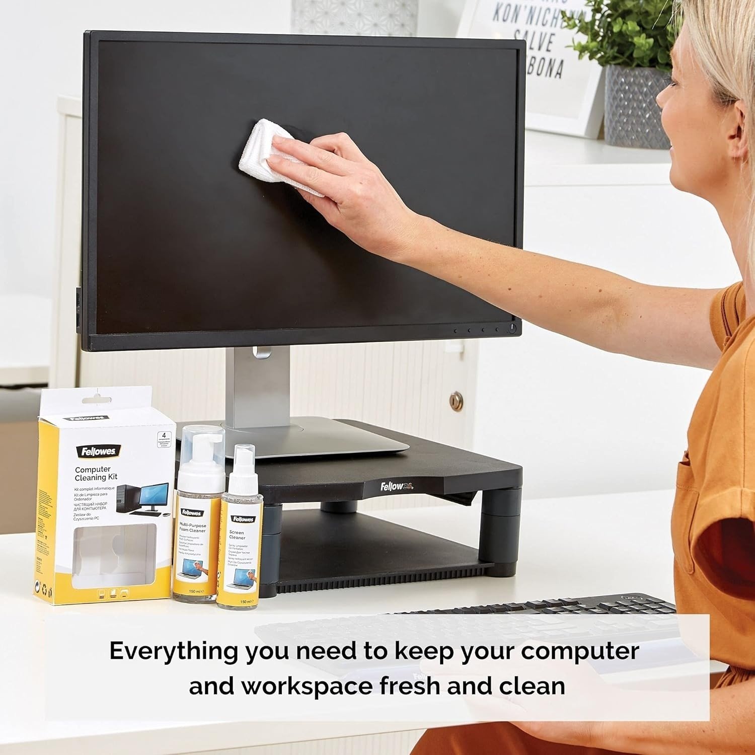 - Fellowes pc leaning products have anti-static properties and leave a long lasting streak free finish