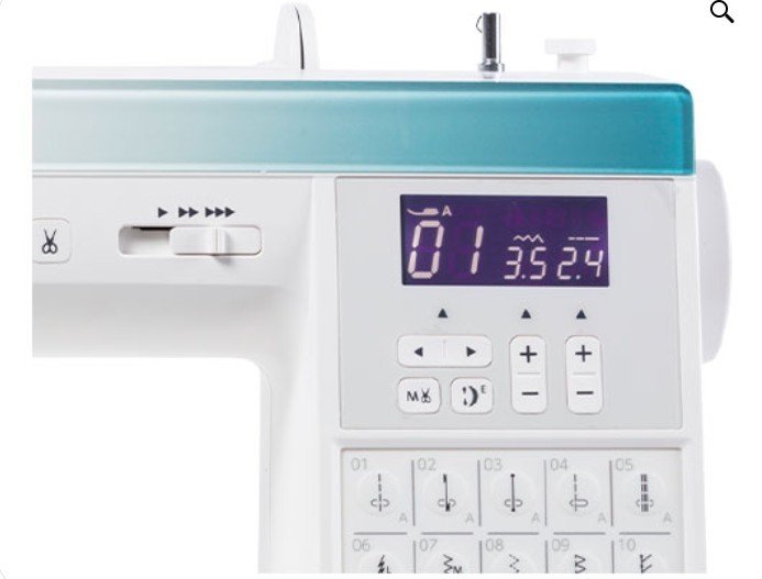 This machine has 80 stitches for many various sewing applications. Direct stitch selection is available for 20 stitches, and the other 60 stitches are pictured on the easy access slide-out stitch charts. When a stitch is selected, the LCD screen shows the selected stitch, recommended foot, default stitch width, and length, which you can change to suit your requirements. The Sewist 780DC also offers a choice of 3 styles of one-step buttonholes.